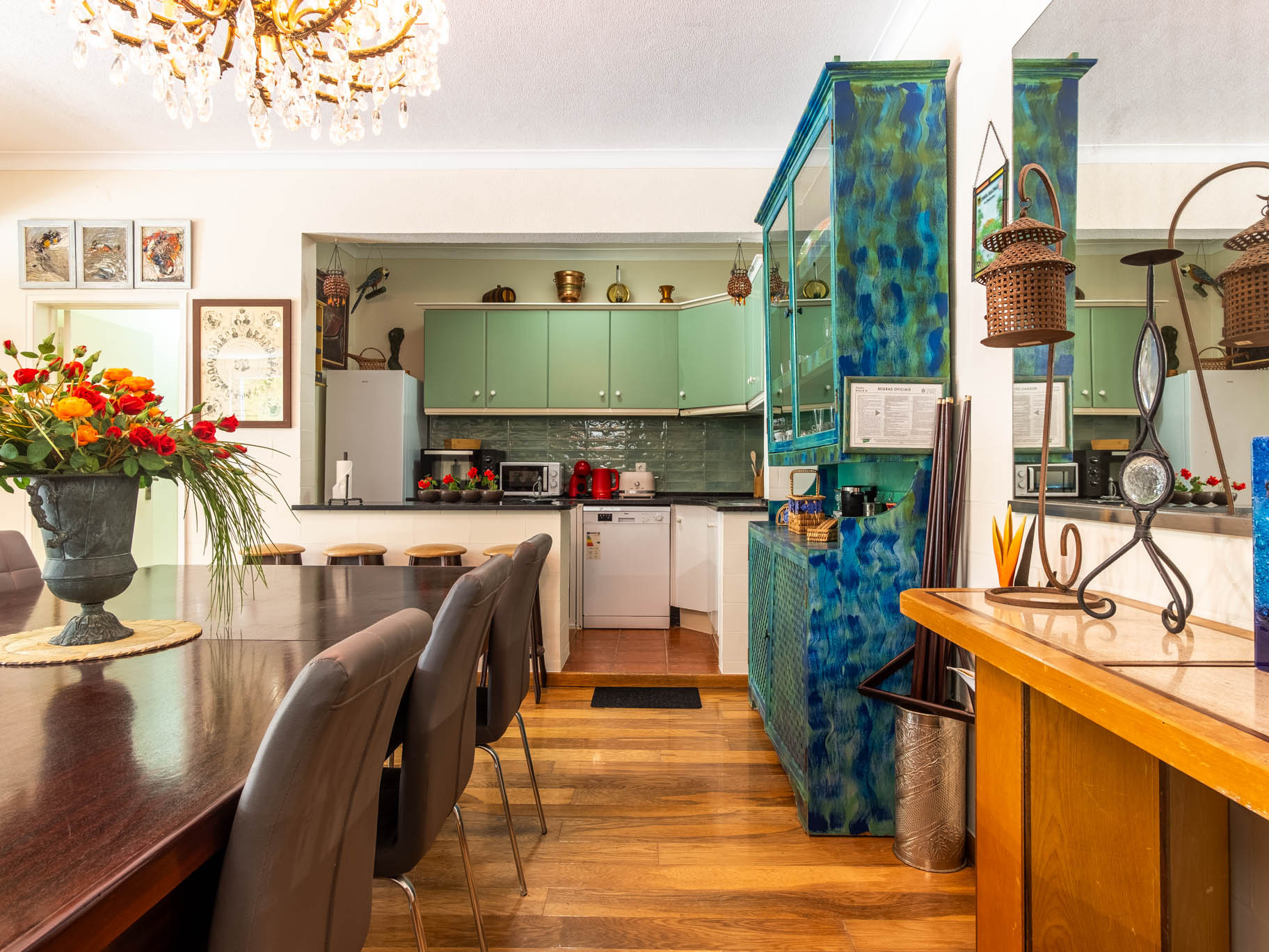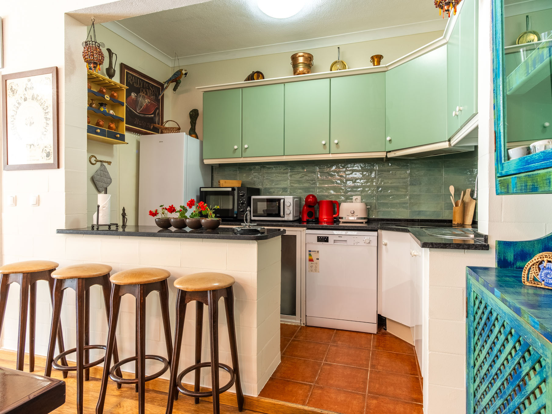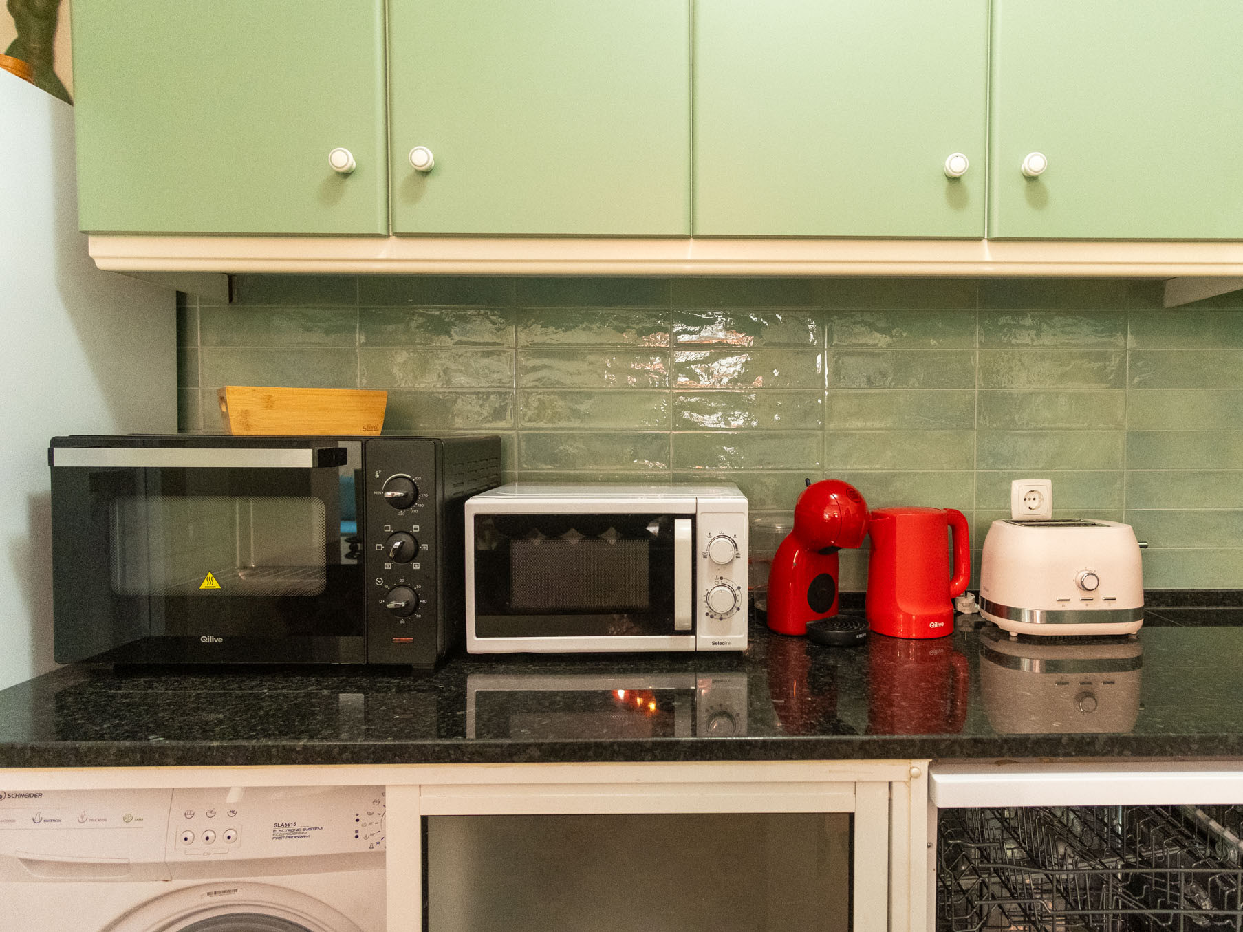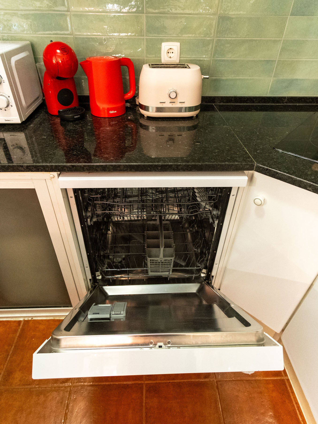 A cozinha, está equipada com frigorífico, microondas, forno, congelador, máquina de lavar louça, louça/talheres, utensílios/cozinha, máquina de café, torradeira, jarro eléctrico e máquina de sumos.