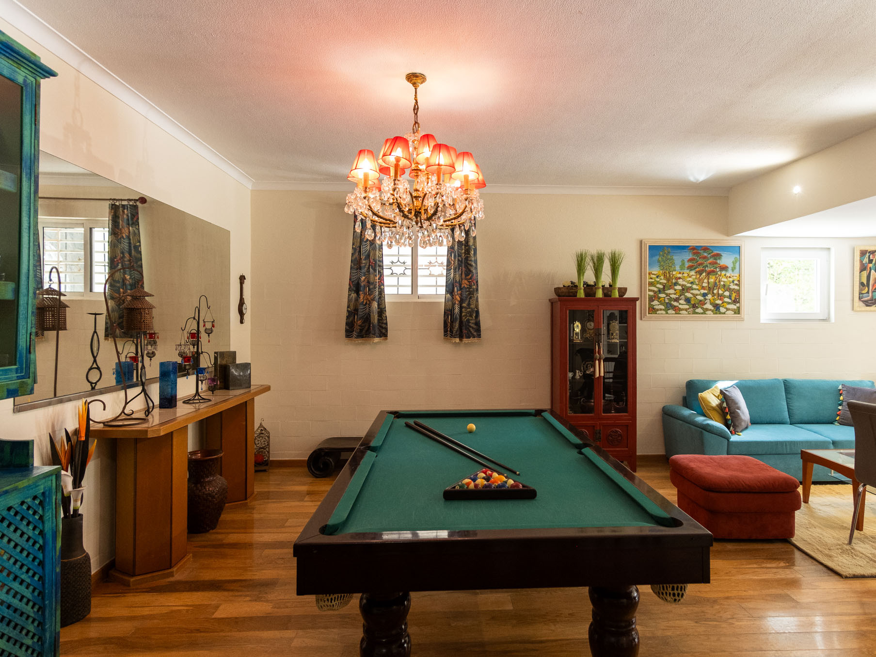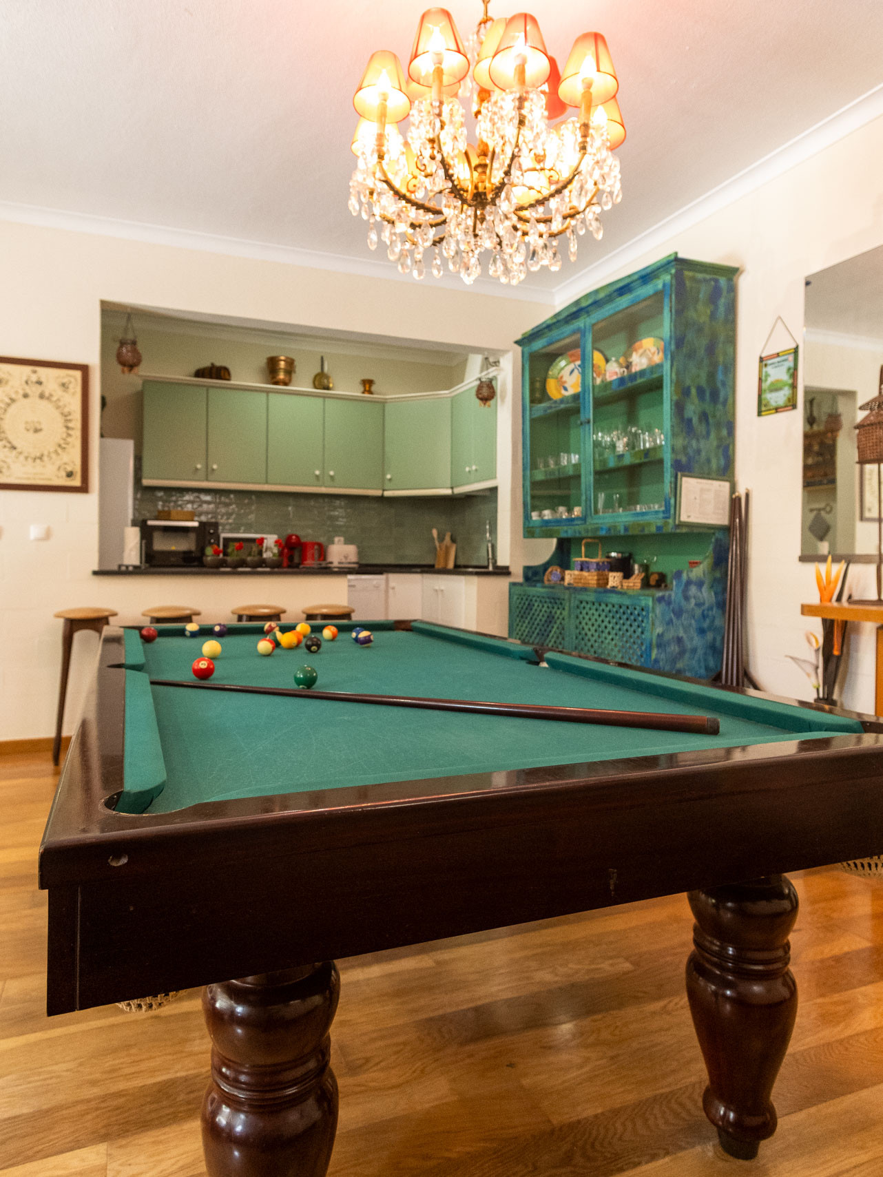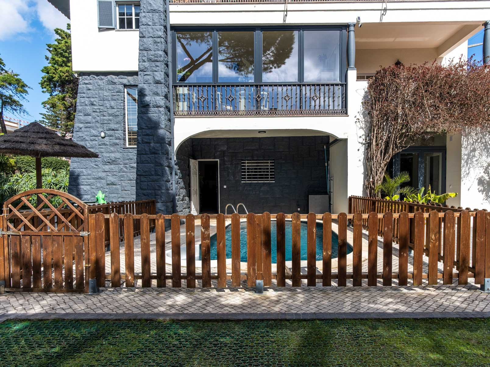 Dispõe de jardim, mobiliário de jardim, parcela vedada, máquina de lavar roupa, churrasqueira, ferro de engomar, acesso internet (wifi), secador de cabelo, aquecimento com radiadores eléctricos, piscina privada, estacionamento ao ar livre no mesmo edifício, 3 ventiladores, 1 Televisão.